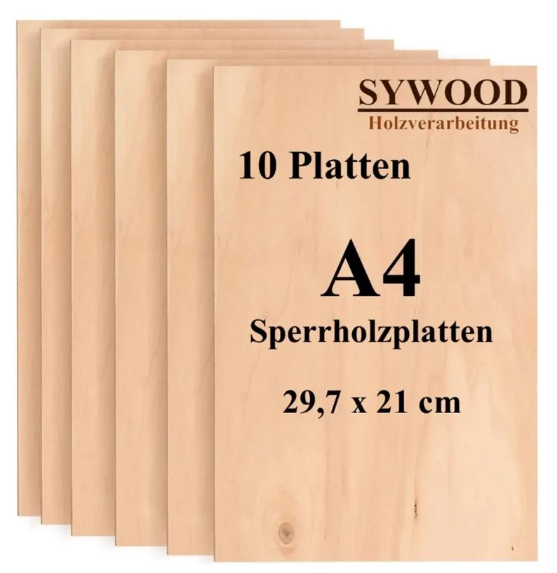 10x DIN A4 Sperrholz Birkenholz Platten | 210x297mm | Materialstärke 6mm