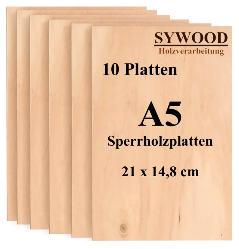 10x DIN A5 Sperrholz Birkenholz Platten | 210x148mm | Materialstärke 3mm