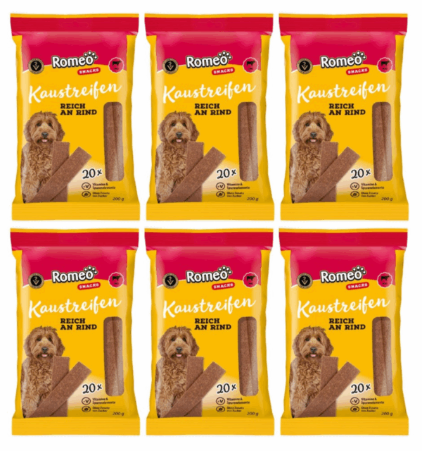 6x 200g (1200g) ROMEO Classic Kaustreifen mit RIND Soft Snacks Leckerlis