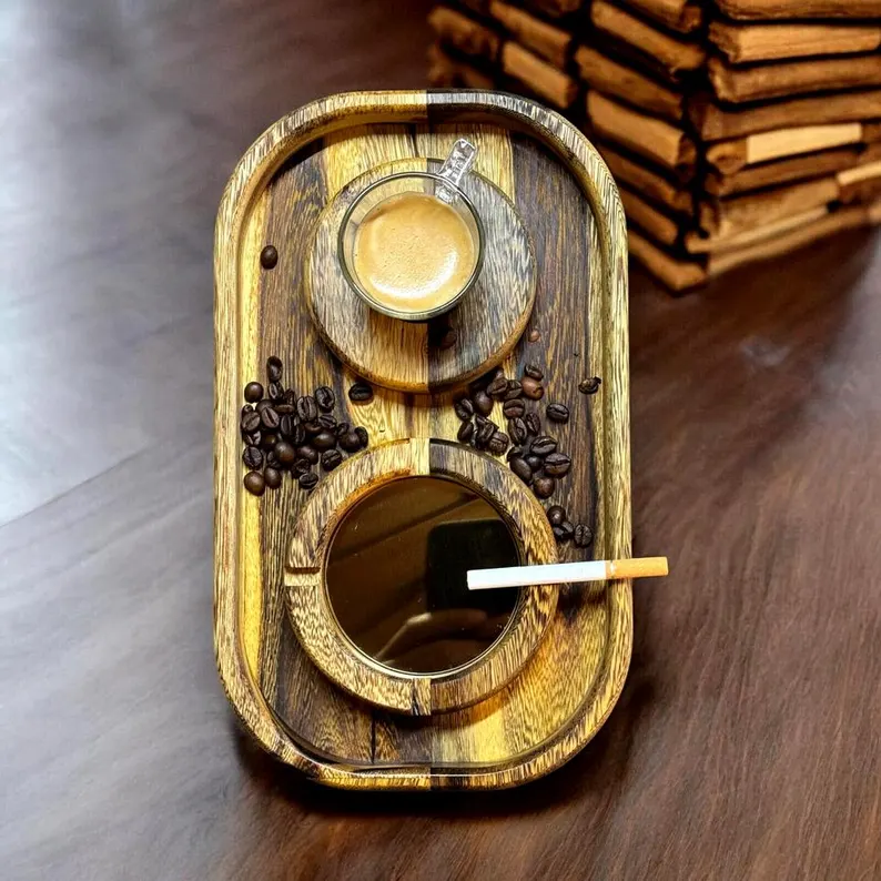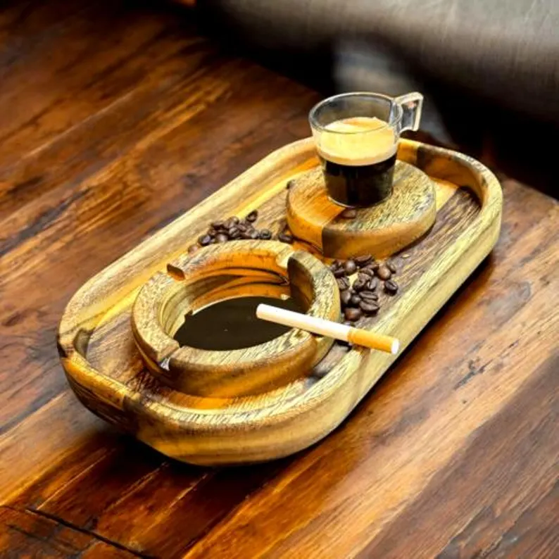 Aschenbecher + Espresso SENNA Holz Afrikanisches einzigartiges Edelholz Massiv