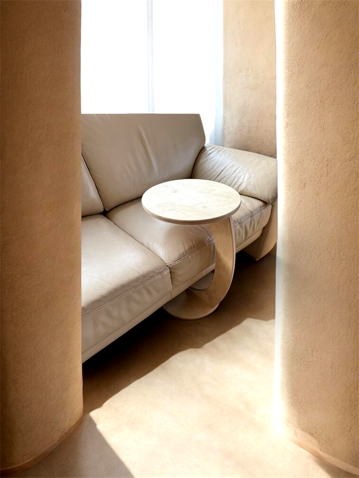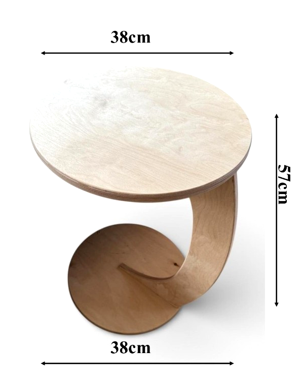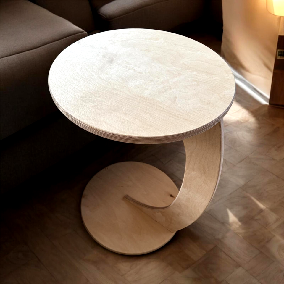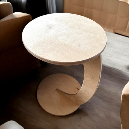 Birkenholz Beistelltisch C-Form runder Couchtisch Sofatisch Wohnzimmer Birkenholz