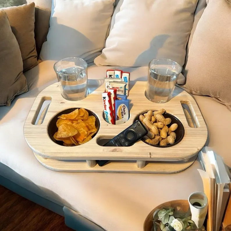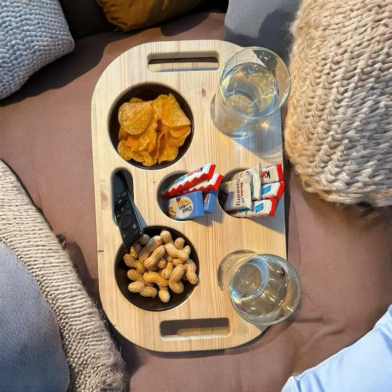 Genieße gemütliche Tage auf der Couch mit unserem exklusiven Couch-Butler, dem Must-Have für perfekte Fernsehabende. Schluss mit verschütteten Getränken und chaotischen Couchtischen – der Couch-Butler schafft Ordnung und Stil in deinem Wohnzimmer.