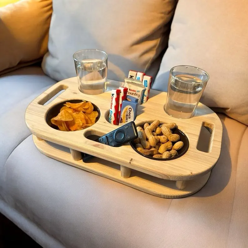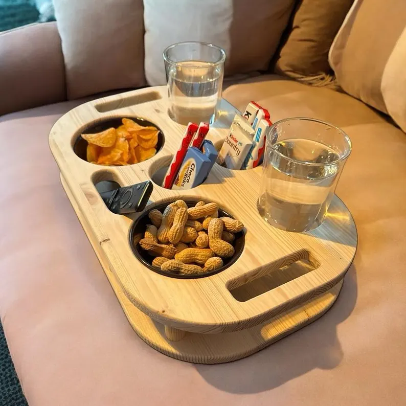 Genieße gemütliche Tage auf der Couch mit unserem exklusiven Couch-Butler, dem Must-Have für perfekte Fernsehabende. Schluss mit verschütteten Getränken und chaotischen Couchtischen – der Couch-Butler schafft Ordnung und Stil in deinem Wohnzimmer.