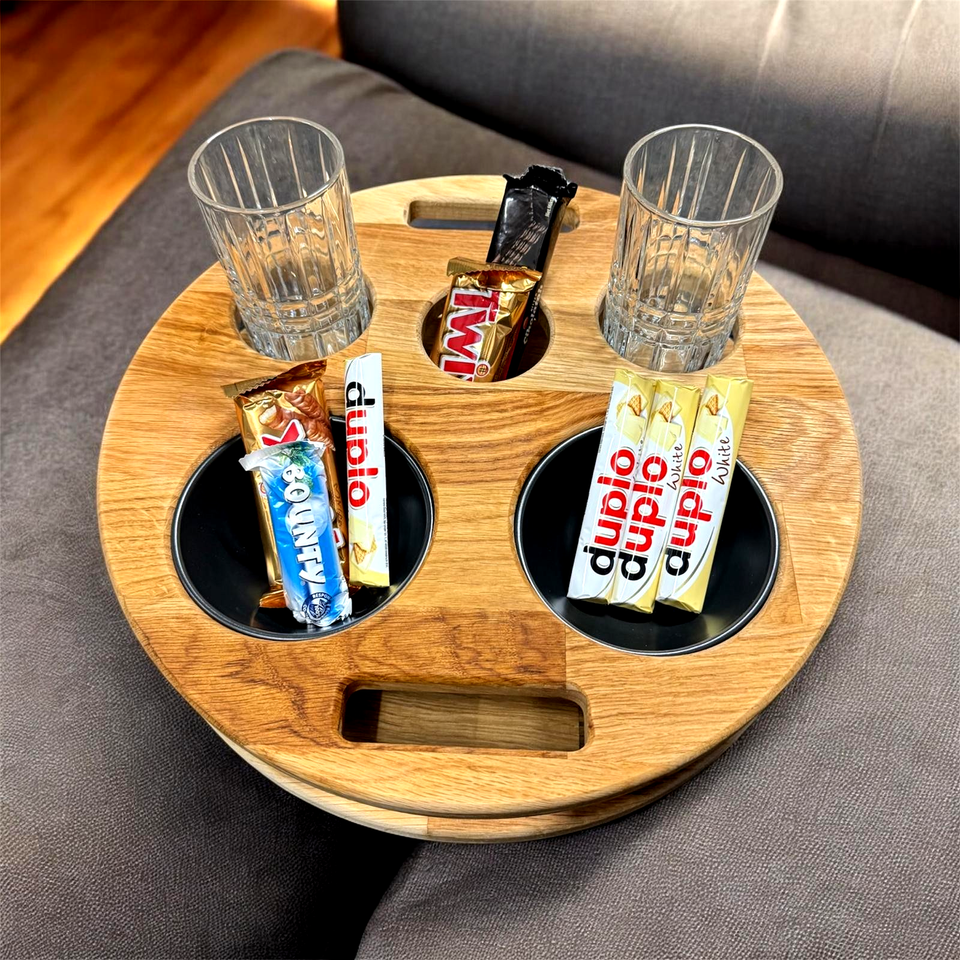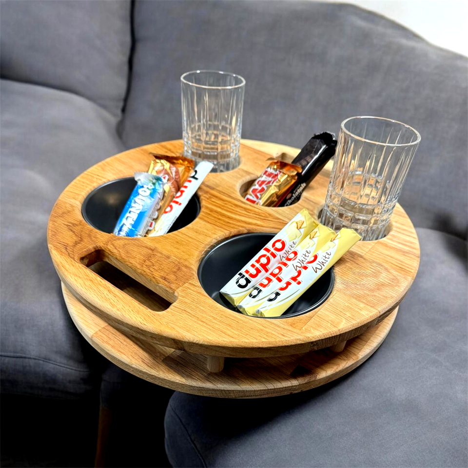 Couch Butler Eichenholz Couchbar – Sofabutler – Snackbar für Couch – Eiche Tablett 37x37cm