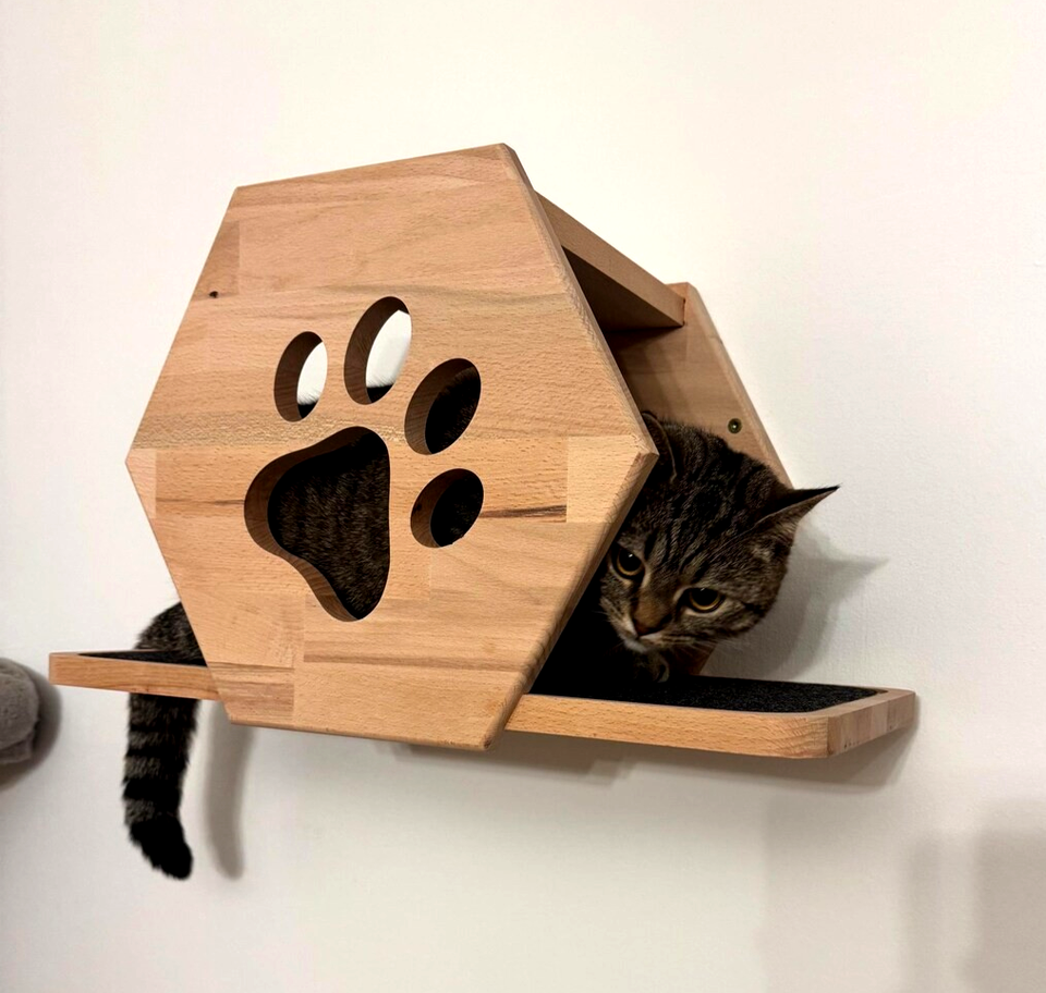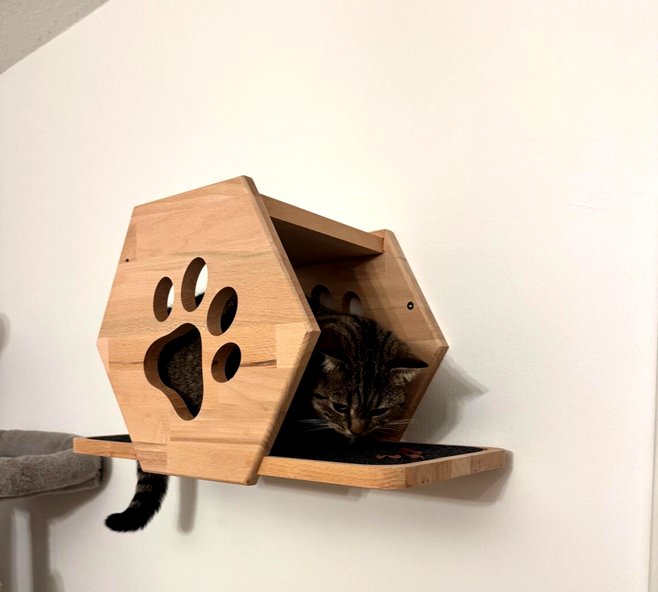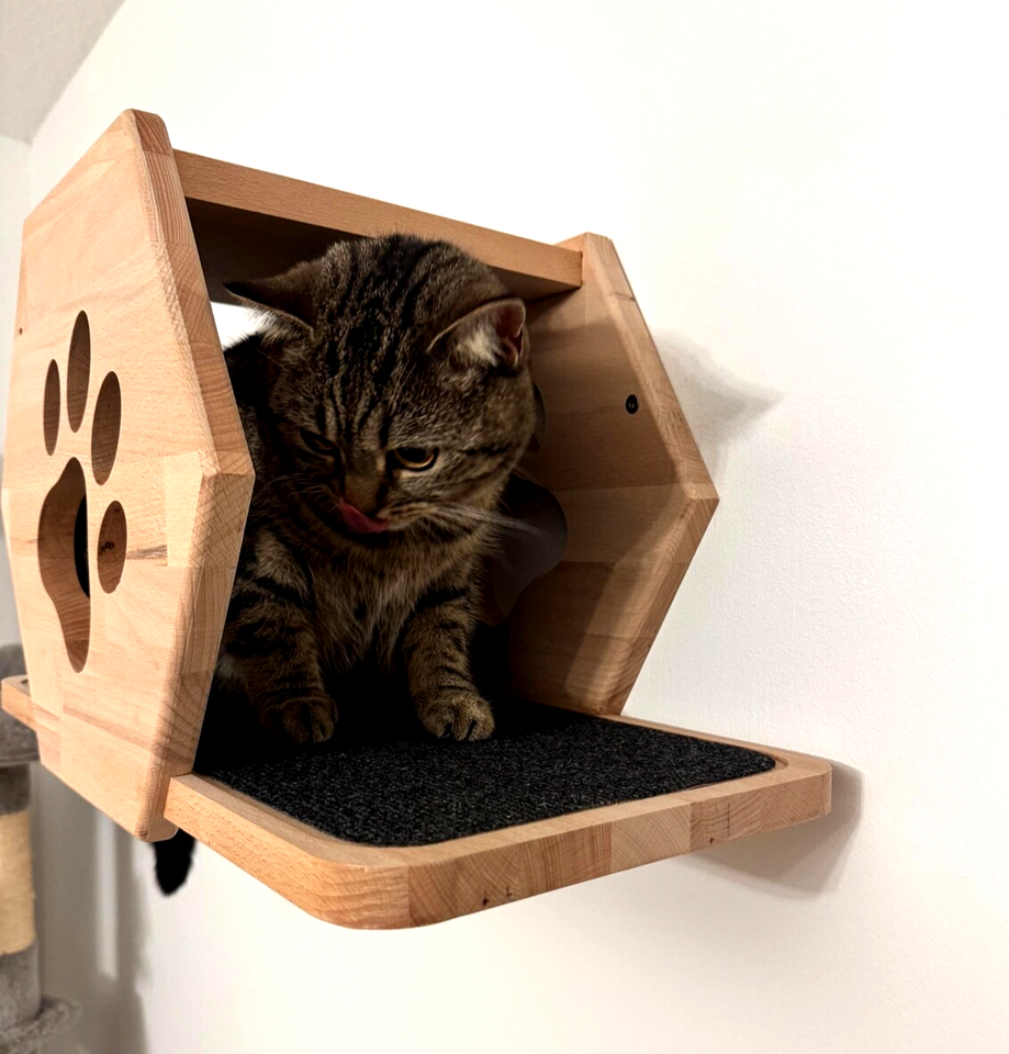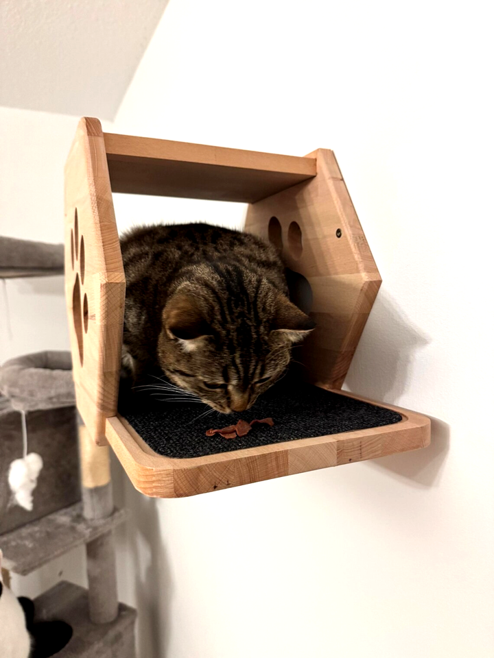Katzenbalkon Katzenbett Etage Buche Holz massiv Natur FSC zertifiziert