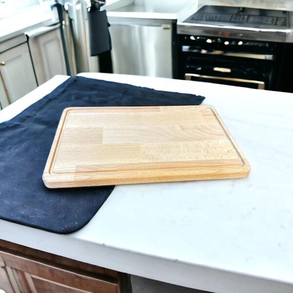Hochwertiges Buchenholzbrett, mit den Maßen 29x19x1,8 cm. Dieses Brett ist äußerst vielseitig einsetzbar und eignet sich perfekt als Küchenbrett, Schneidebrett, Frühstücksbrett oder Servierbrett. Das Brett ist mit einer Saftrinne versehen.