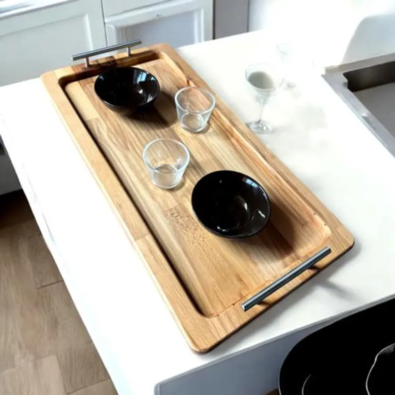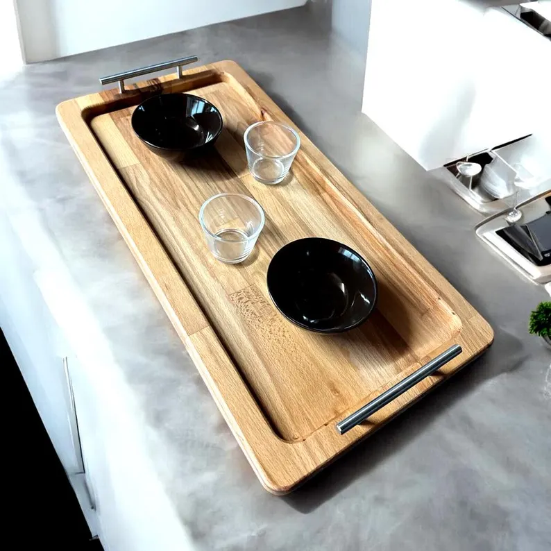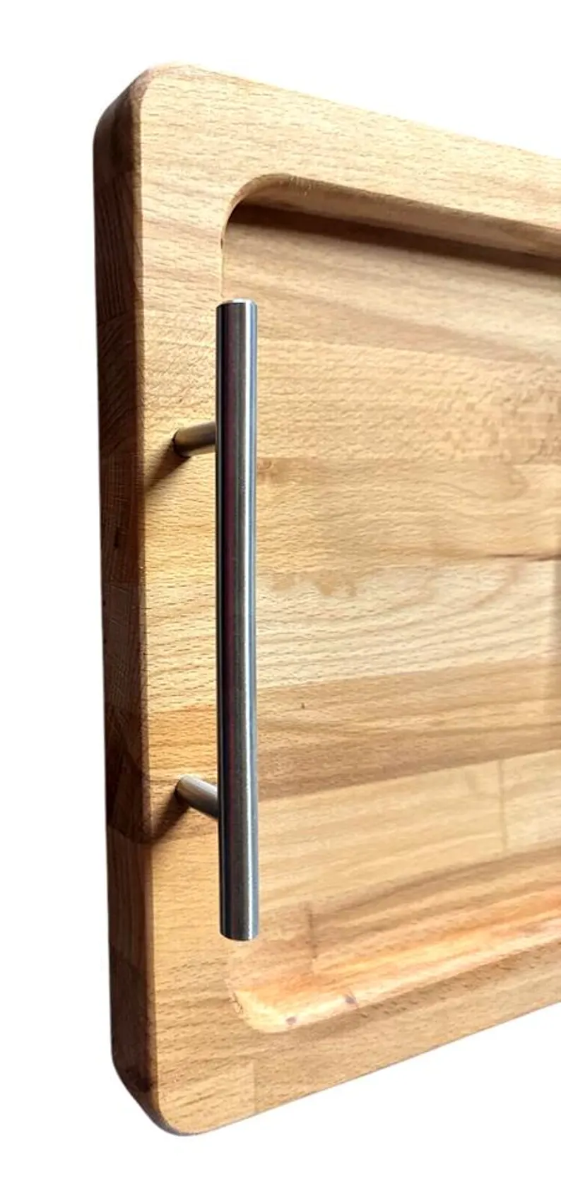 Servierbrett Buchenholz Massivholz mit Edelstahlgriffen