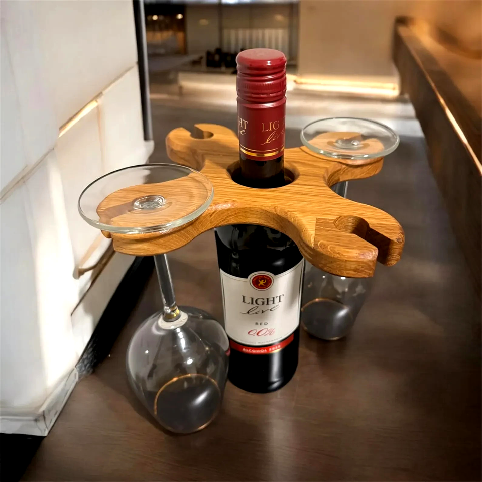 Weinflaschenhalter aus Eichenholz Flaschenhalter für 4 Gläser